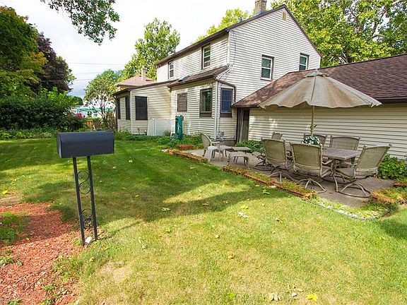 Lovingly maintained East Irondequoit colonial with 2 car garage and beautiful, park like back yard full of perennials, raised plant beds and a shed. This home features an open living-dining combo, stainless kitchen with breakfast bar, cozy bonus den/sun room, newer windows, 3/4 bedrooms, as well as 1 full bath and 1 bath with jetted tub. The upstairs bedrooms feature hardwood floors and fresh paint in 2. Less than 2 miles from Lake Ontario and close to the expressway. Appliances Included. Open House Sunday 9/23 from 12-2 pm.