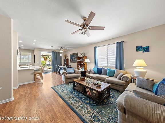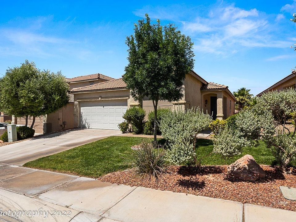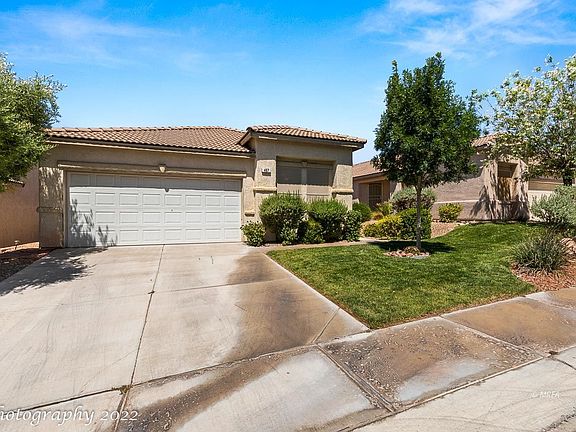 Great Single Family Home in the beautiful area of Sedona! Come see this popular 1636SF model with 3 bedrooms, 2 bathrooms and a 2 car garage. All appliances (kitchen and laundry room) stay with the home. Some 2019 remodeled items are: inside walls and ceilings painted; second bathroom shower enlarged and sliding drawers added; kitchen island lowered and Quartz countertop added; canned lighting; tile backsplash; new kitchen appliances; vented range hood; painted kitchen cabinets; insulated drapes on back patio window. The primary bathroom has double vanities, a walk-in tub and a walk-in closet. There are window coverings throughout. The backyard patio has a cover and pergola plus desert landscaping. There is a lawn in the front yard that the Home Owner's Association maintains. The HOA also covers sewer, trash pick up, road maintenance and an offsite recreation facility with pool, hot tub, tennis court, volleyball court and indoor exercise/workout room. If you are looking in Mesquite, place this home at the top of your "must see" list
