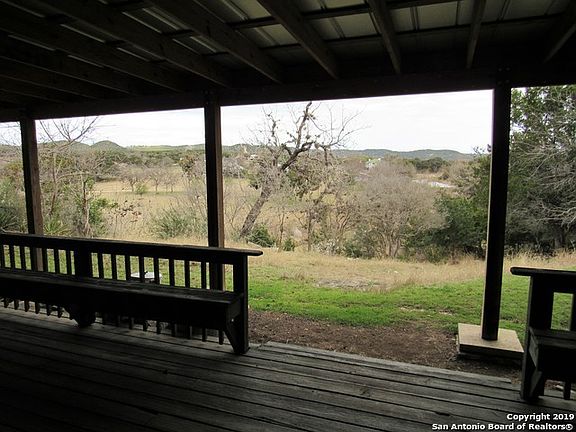 Beautiful, well kept country home with 5.1 acres of gorgeous hill country! Property sits on a stunning creek and features wonderful views. Extra large, detached garage or workshop. Charming covered front and back porches (oversized). Second master could be used as a mother in law suite with private access. Convenient to Bandera and San Antonio.