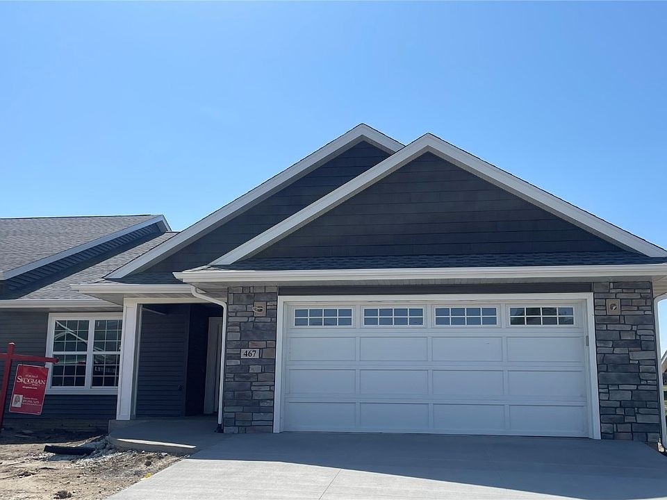 New construction ranch condo with 1,445 square feet of main floor living and expandable lower level. Your storage needs are met with a tandem deep 3rd stall 48' deep and 12' wide. (Also, zero entrance from the garage to the mudroom) Luxury amenities include hand milled and built cabinetry with solid wood and dove tail drawers, luxury vinyl flooring, solid surface counters, overhang island bar seating, walk-in kitchen pantry closet, drop zone bench seat and cabinetry. This splits bedroom ranch offers a 9' main side wall and open floor plan. South facing Pella windows provide an abundance of natural light. Enjoy the 12' x 14' covered patio with the neighborhood detention view. Primary bedroom offers a tray ceiling, a dual vanity sink, walk-in shower, and spacious walk-in closet. The open iron railing leads you to the expandable lower level with 2 egress windows and full bathroom plumbing stub. Condo association allows 2 pets and invisible fencing. $145/ month HOA for snow removal, lawn care, and exterior insurance policy.