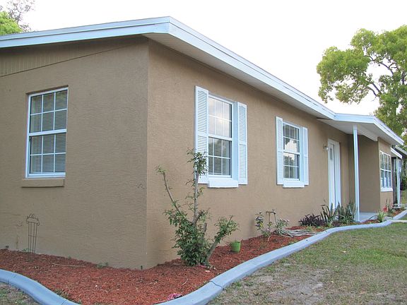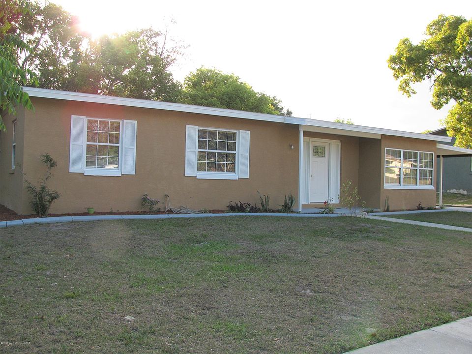 WOW 3 Bed - Move-In READY. Remodeled Kitchen includes Cabinets, Counter and Appliances. Updated: Bath Sink, Vanity and toilet - Windows & Blinds - Fans with Lighting in Dining, Living, Office and ALL 3 bedrooms. Easy maintenance with beautiful Tile floors throughout the home. Freshly painted. Fantastic for First Time Home Buyer, Snowbirds looking to be close to the Gulf, Investment/Rental property and YOU. Nicely Treed Fenced Yard with a concrete pad ready for you to add a shed. This home also features a carport to shade your car or boat from the Florida Sun. NO HOA, Not in a Flood zone. ROOF 2011. Dining Room and Office have newer window AC. Home has a total of 1180 sq ft MOL does not show on county records.