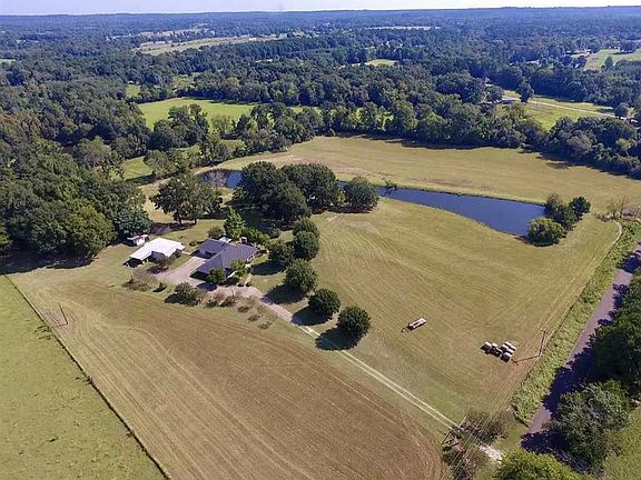 This INCREDIBLE East Texas estate sits high above a hay meadow, overlooking a 4-acre spring fed pond. Pass through the gated entrance to be greeted by rows of blooming crepe myrtles and rolling fields. Meticulously maintained with a desirable floor plan and ample space, this custom built 3 bedrooms 2.5 bath home on almost 21 acres includes a Generac generator, brand new oversized salt water pool, newly constructed man cave, newly built 36' x 60' shop, and another 30' x 40' shop. Enjoy 2 living areas, each with a fireplace, and a sun room overlooking the pristine pasture. Kitchen includes custom cabinetry, island, and walk in pantry. Just off the main entrance to the home sits an oversized front porch, complete with ceilings fans and rocking chairs. New roof, 6-inch slab, pond stocked with bass and sunfish, fully fenced with security gate and alarm system. This one of a kind property is the complete package... truly a must-see!
