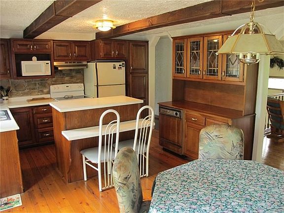 An acre! Spend you time fishing in the pond or working in the outbuilding of this 3 bedroom split entry with 2 sheds, finished basement w/fireplace in family room, den, cedar closet, laundry room & one car garage which could be turned back into a 2 car garage. Living room has a large bay window & hardwood flooring, kitchen boasts of an island w/seating, built-in hutches, hardwood flooring, trash compactor, beamed ceiling & dining area.Main bath has jet spray tub, cathedral ceiling and palladium window. Brand new furnace.
