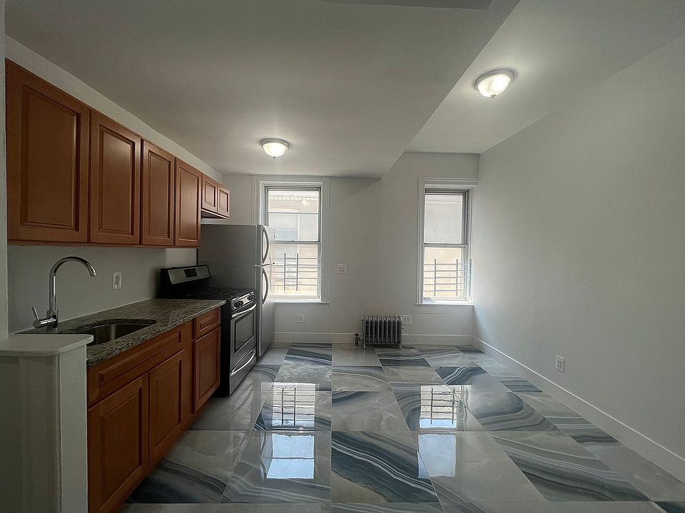 Here you will have a lovely Newly Renovated 2 Bedroom Apartment? - Located on the 2nd floor but an easy walk-up - As you enter the apartment, you walk directly into the open living-room and kitchen concept - This is a comfortable size two bedroom - The lighting gives a very bright and sunny feel! - The kitchen allows for a small dinning table (Eat-in kitchen) - The gorgeous floors gives a modern feel to the apartment - The kitchen has stainless steel appliances, granite countertops and lovely wood cabinets - The bathroom has both a shower and a tub - There is a linen closet directly outside of the bathroom - One room has a nice size closet and the other does not. However, there is an additional closet in the hallway that can be used as a bedroom closet - The utilities are not included - Near the B7, B103 and B156 A must see two bedroom apartment?