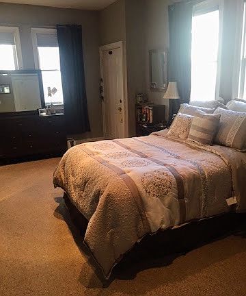 Nice reversed living two bed/two bath duplex. Huge kitchen and living area on bottom level but very well laid out. Full laundry and full bath off kitchen and some extra storage. Upstairs are two bedrooms and full bath off huge master bedroom. Hardwood floors, central a/c. Private roof deck with awesome water views. first, security and fee due at lease signing
