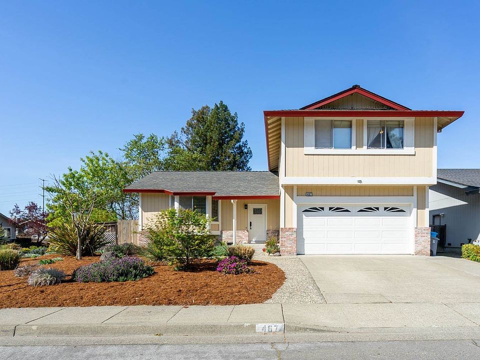 This corner lot is located in the North West Wikiup area of Santa Rosa. The home has 4 bedrooms and 2 1/2 bathrooms. As you walk into the home there is a living room and dining area where you have space for entertaining. The kitchen is light and bright with white cabinets. The family room has a fireplace and patio doors that go to the back yard. Once in the backyard, you can enjoy sitting out on the deck, planting a garden, or spending time on the grass. The front yard has updated landscaping. Solar lease with Tesla helps to lower electricity bills. Many new features in the house include: bathroom windows, window screens, front door, patio slider, interior doors and handles, outlet covers and switches, upstairs carpet, upstairs baseboards, garage floor epoxy, kitchen backsplash, and more. Don't miss out on this move in ready home!