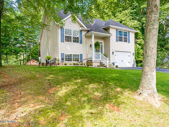 Welcome home to 467 Long Needle Road, located in Doe Valley. A convenient commute to Fort Knox and Brandenburg, with close access to Joe Prather Hwy and Hwy 60. This bi-level offers 1884 total living SQFT, with 3 bedrooms, 2 full baths, spacious living areas, screened porch and sits peacefully on a 0.25 acres wooded lot.THIS IS AN OPPORTUNITY YOU'VE BEEN WAITING FOR! Open concept living room, dining area and Kitchen located on the main level with laminate flooring, great for entertaining. Large windows and glass doors for natural light and plenty of room to accommodate all your furniture. Access to rear screened deck perfect for enjoying the beautiful outdoor setting no matter the time of day. The kitchen includes an abundance of cabinetry and counter space. Stainless steel appliances remain. Upper level hosts two bedrooms with plenty of room for all your furniture, Closets provide ample space for personal belongings and a linen closet which is adjacent to the bathroom. The roomy full bath with a double vanity with storage, a large mirror, and a shower/tub combo. Newer flooring and fresh paint, ceiling fan/light fixture combo and large windows throughout. Lower level with laminate floors features a large family room and the third bedroom with closet access under stairs for extra storage, access to 1-car garage, second full bath with pedestal sink and shower, laundry room, and walk-out access to partially covered patio, partially fenced rear yard, storage shed and fire pit. Spacious driveway with excess parking.