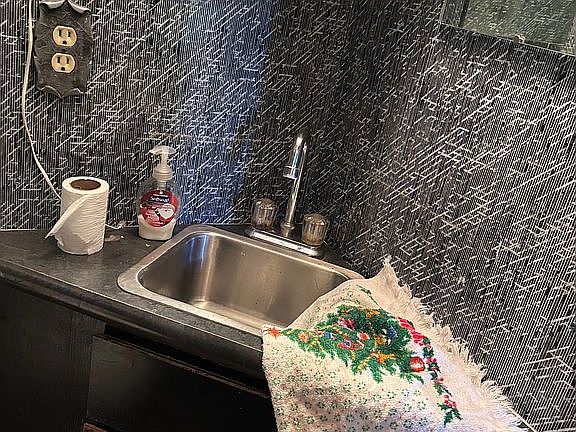 -Backroom - family room that has a water fountain, sheves for "display of collections" , sink/bar area, huge room all open with sky lights
