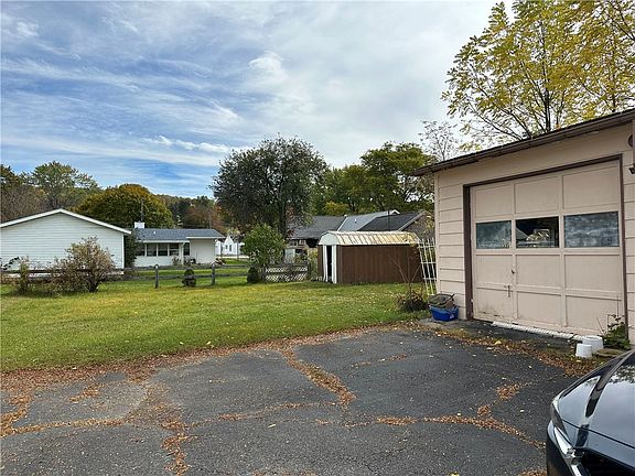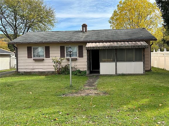 Diamond in the rough. Yes, this is an old style Ranch home with 3 bedrooms and 1 Full bath. Needs work such as painting, siding and maybe a newer roof. The good news the heating system practically new on demand hot water heater. Plus, electric has some upgrading but everything in working order mechanically. The home has attached 3 bay garage that can be used as a workshop or storage area. Nice size yard with tool shed. Quiet street located on a dead-end street. Like a cud-de-sac. Plenty of parking. Paved driveway. This home needs a lot of attention but if you're looking for a good location then start here. Remodel it your way. The lowest priced house in the village especially for N. Hornell. Village water and sewer.
