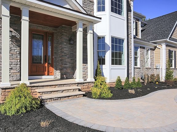 Luxury, new construction by Fallone Builders. Custom center hall colonial perched on 2.2 rolling acres in Bernardsville. No detail loverlooked! 5 bedrooms including a 1st floor en-suite guest bedroom, 4.5 bathrooms, 2 story Family Room with gas fireplace, sun room, chef-inspired kitchen with walk-in pantry and 1st floor laundry. Master suite includes sitting area with gas fireplace, bonus room, walk-in closet and gorgeous Master Bath. Over-sized space in the basement to be finished, rear staircase off kitchen, 3 car garage, beautiful two-story foyer and custom millwork throughout the entire home! Added a good sized patio with hot tub. Move-in Ready!