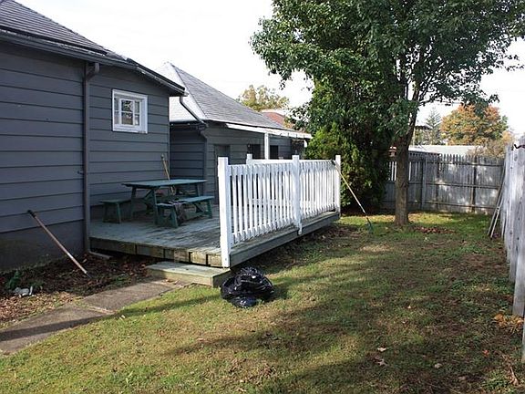 Adorable bungalow style home, recently painted, with newer flooring in kitchen, and bath, with full basement, and 2 car garage. Feel secluded in the private back yard setting. Perfect starter home, or rental investment.