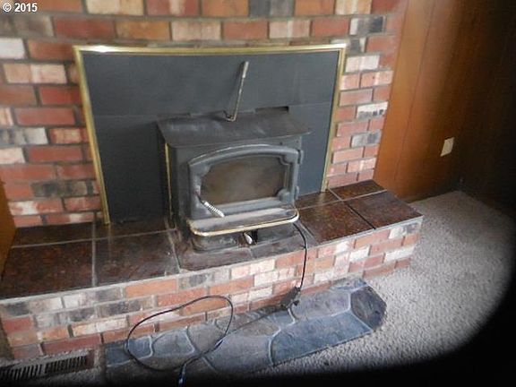- Fireplace features: wood stove