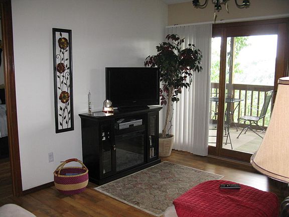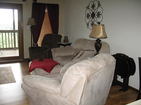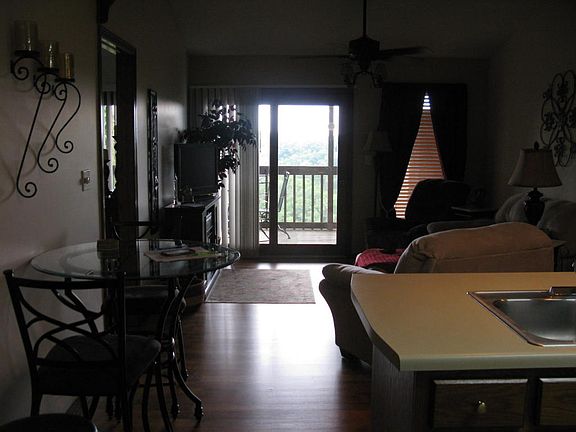 Extremely well kept condo - End Unit - Very Private with views of the Ozark Hills. Unfurnished except for refrigerator, stack washer/dryer, and stove. Tile & laminate flooring. Resort has two pools, walking trails, playground, and common areas.