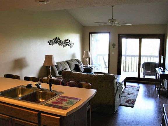 Amazing 2 bedroom, 2 bathroom, mountain view condo near Silver Dollar City, Talking Rocks, Table Rock Lake, Indian Point, and Branson Shopping. New wood floors and it comes fully furnished. Turn-key opportunity for investment or personal residence. This building has the best views around. Notch Cottage estates has its own private stocked lake with huge fish, walk down several of the hiking trails and enjoy the beautiful surroundings of the Ozarks. New, decking, pools, picnic area. This place has everything you could really want.