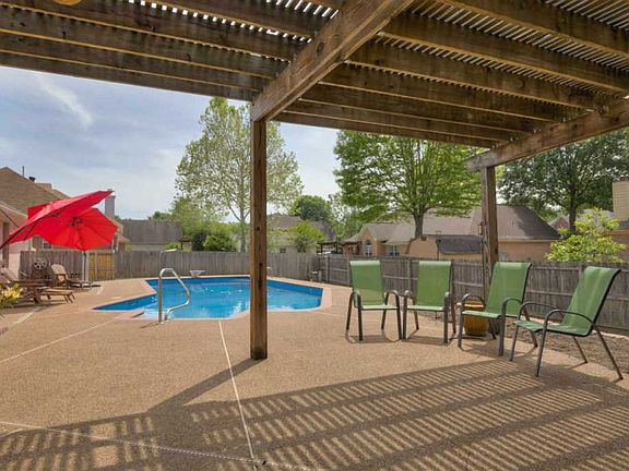 Amazing 4 Bed or 3 Plus bonus. Features beautiful laminate floors, all new light fixtures, hardware, faucets, dishwasher & microwave. Has a double oven, custom shades, vaulted textured ceilings, and open arches. Large master with luxury bath. Fenced backyard, in-ground pool, new liner, LED lights, new saltwater pump, speakers, water sealed Pergola, AC/wired storage building/Play House. Garage has built in cabinets. Solar screens on front windows, new driveway, and roof replaced in 2013.