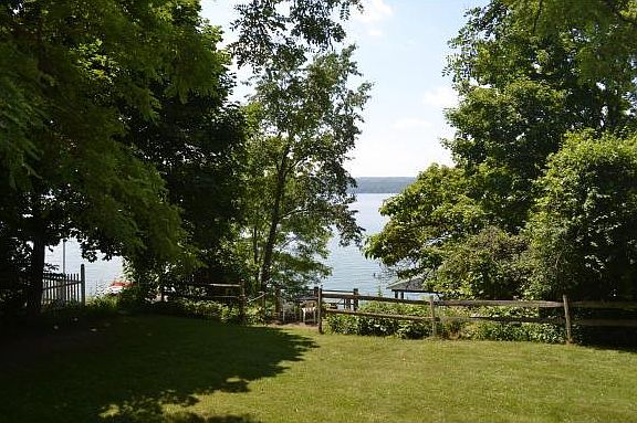 Lakefront home with amazing views and just a few steps to the water! This single level cottage opens into a living room with lots of windows that bring in natural light. This home includes a kitchen, comfortable living room and dining room and two bedrooms. Located on the east shore of Cayuga Lake the sunsets can't be beat! There's a large deck, including a boat hoist and storage shed on the property. This heated lakefront cottage also features year round living!
