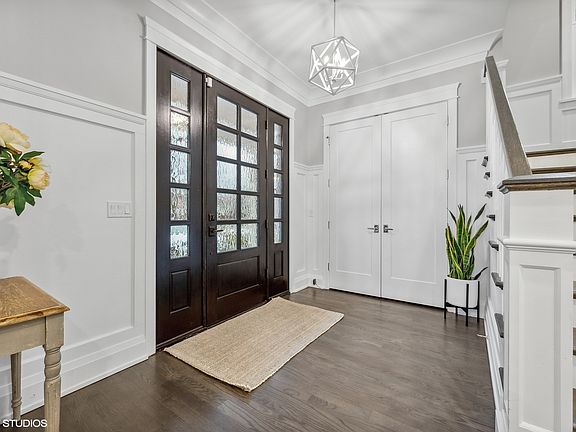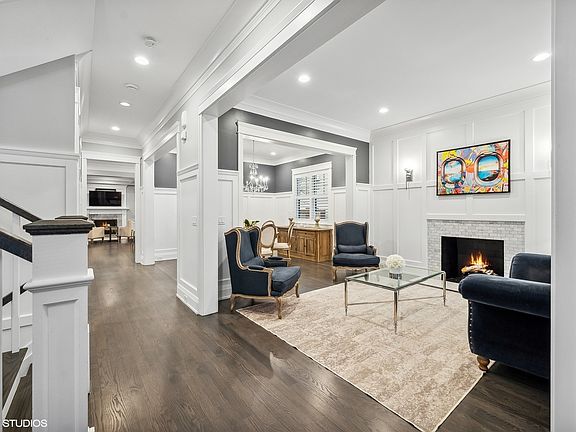 Rare opportunity to call this impossible-to-find newer construction home in the heart of the desirable 'Tree Streets' your home! Built in 2017 this pristine 6 BD / 5.1 BA 4-story luxury farmhouse was designed with distinction for today's buyer offering openness and serenity throughout. Stunning white chef's kitchen with high-end stainless steel appliances, gleaming quartzite waterfall countertops, large eat-in casual dining area with bench seating combined with HUGE family room with extensive built-ins including 'command center' desk, coffered ceiling, stunning fireplace flanked by french doors that lead to gorgeous stone patio with outdoor fireplace - great for entertaining! The first floor also includes a separate formal dining leading through to a formal living room with a contemporary marble fireplace, formal foyer entrance with beautiful open staircase as well as a large mudroom with heated floors off the side entrance and a guest powder room. The 2nd floor boasts a large tranquil primary suite with crisp white marble bathroom including heated floors, tub, shower, double vanity, built-ins and a large walk-in closet. Three additional well-sized bedrooms on the 2nd floor, one with ensuite, two sharing a 'Jack and Jill' bathroom as well as a bright laundry room. The third floor tree-top suite offers a full bathroom and bonus 5th bedroom or office/playroom with charming vaulted ceiling, dormer windows as well as extensive eaves storage. Extraordinary lower level with stylish wet bar, temperature controlled wine room, excellent exercise room, 6th bedroom, full bathroom, large recreation room and even more storage! High ceilings throughout, Sonos in the family room and gym, Nest cameras and thermostats, electric car charger, backup generator, invisible fence, deep (200') backyard - EVERYTHING you need steps from restaurants/shops/train/town and K-8 schools! MUST SEE! Agent Owned. Showings start at Broker Open 2/28