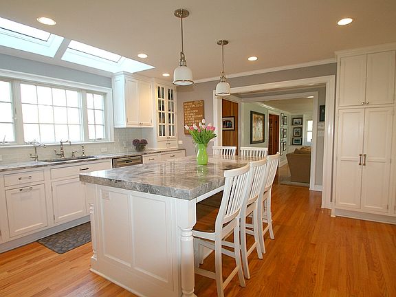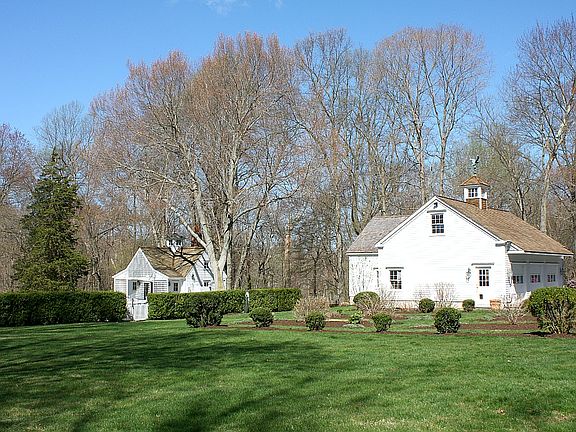 Gorgeous new kitchen with fabulous white Viking range is only one of the special features in this home. Great room scale and flow, classic New England features blend with a transitional open-flow, spacious floor plan. French doors and abundant windows give panoramic views and access to the bluestone terraces, formal and vegetable gardens, pool, and pool/guest house on the property's three acres that are defined by native stone walls and gorgeous trees. Abutting 300 acres of open space and bridle trails, stepping into the yard feels like taking a vacation, while being located 2.8 miles to vibrant town center and train, 4 miles to beaches and minutes to great schools. The pool/guest house has stainless and granite kitchenette with counter bar, a full bath, stone fireplace and it's own laundry. The oversized (1400 sqft main level) garage can hold 5 cars, and has a second floor that could be finished as a home office or gym or party room. Style and sophistication define this welcoming home. Pool/Guest house is additional 500 sq ft. House Whether a primary home or weekend place, this is a great investment and place to call yours.
