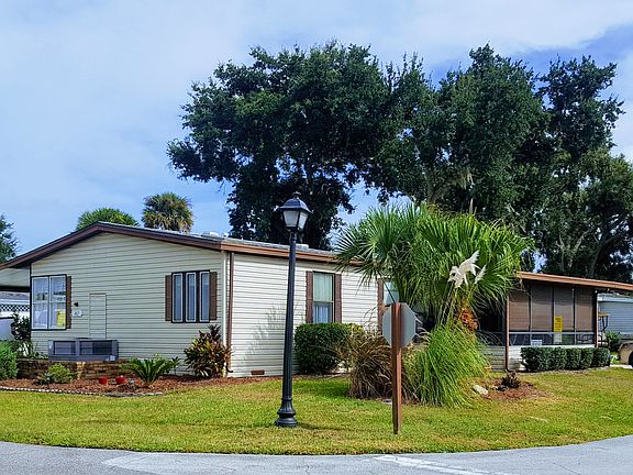 This immaculate 1989 Palm Harbor is set on a beautifully landscaped corner lot located in peaceful, Hacienda Del Rio. The spacious, 3BR/2BA, split bedroom house with open floor plan features cathedral ceilings throughout and is perfect for entertaining and overnight guests. It boasts an attractive kitchen with clean appliances and undercabinet lighting, breakfast nook with large window, a formal dining area, formal living room, laundry room, screened porch, storage shed, 45’ carport, two driveways, and a NEW ROOF in 2016. The skylights bring lots of natural light into the home, and the new LOW-E windows on the south side of the house protect your furniture from fading. The two guest bedrooms have FRESH PAINT as of February 2018, and all light fixtures (except undercabinet lighting) have new LED bulbs. All full price offers will include a golf cart and a one year home warranty. Located in a five star, intercoastal, GATED community with all the social activities and resort amenities you deserve and just minutes away from local shopping, dining and the BEACH! This home is a MUST see! Call for a free tour today!