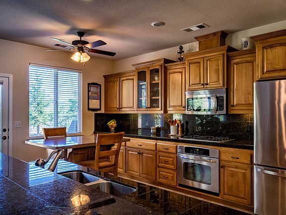 Lassen and mountain views from this immaculate home with a 2 way fireplace separating living and family rooms. Beautiful kitchen featuring granite countertops, honey glazed maple cabinets, SS appliances and tile floors. Baths and vanities are all tile. Covered rear patio and fenced back yard. Private setting on 3.75 acres gives a country feel yet in the City with city utilities.