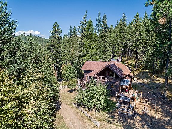 For sale by owner. This is a very unique, custom home. The architect has built at least 3 homes on Upper Rocky Rd. Situated on a 5 acre parcel, with an additional 5 acres adjoining. It has a very open feeling with a large tiled entryway with many coat hooks and a closet that has steps down to a root cellar. A shared guest bathroom on the main floor that connects to a bedroom with new paint and carpet in the last two years. The main level has original hardwood floors that were professionally restored less than two years ago bringing life back to them. The living room has an efficient and very effective Quadrafire woodstove that heats the whole home very well set inside a natural rock fireplace. It also has a heat-pump for heat and AC. The kitchen has custom cabinets, a copper sink and a large, very useful butcher block and bar counter. At the top of the stairs there is a bedroom; continue down the hall for the master bedroom with a great view off a private balcony and a very large walk in closet. 2 skylights upstairs. Unfinished basement is accessible from a separate exterior door and is a great place for storage, extra freezer, or projects on the built-in workbenches. Also provides walk-in access to the root cellar. There is a 2 car detached garage with a small garage for yard equipment and bikes. In 2003 an incredible 30'x67' shop was built with concrete filled forms which keeps it cool in the summer and well above freezing in the winter. 12'x12' door into the main shop and a 9'x10' side door to a smaller shop. Above the main shop there is room for a small apartment; the trusses were built for it. The 5 acres past the home has a quonset hut that is great boat and other toy storage. We also put in a parking pad for an RV with electric and easy water hookup. For more information send an email to tera777@hotmail.com or text 208-264-8902 and ask for Tera. Thanks so much. If a realtor brings a buyer at asking price a flat fee of 10-20k would be given. We already have a realtor that we are going to turn it over to in a while.