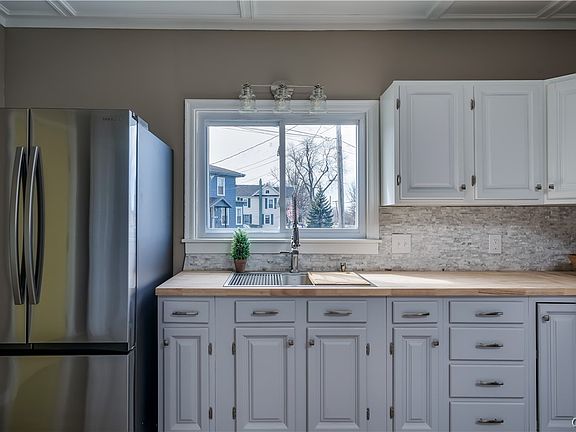 Move in ready 3 bed, 2 bath home in Watertown- Plus seller is willing to help you with your closing costs! Step right into the gorgeous kitchen with plenty of room for the chefs of the home. Admire the new butcher block counters, appliances, flooring, and top of the line Kraus workstation sink. You next will be pulled to the dining room and BRAND NEW first floor full bath. Beautiful faux beams seperate the living room. Now step out onto your sun porch that's wrapped in windows-perfect for plant lovers or a relaxing place for your morning coffee. Upstairs are three bedrooms and another full bath with claw foot tub. This entire property sits on a unique corner lot and had a 2 car garage. It's close to shopping, schools, Fort Drum, and nightlife. The home can be sold furnished so you don't need to worry about the heavy lifting! Don't miss out on this amazing home!