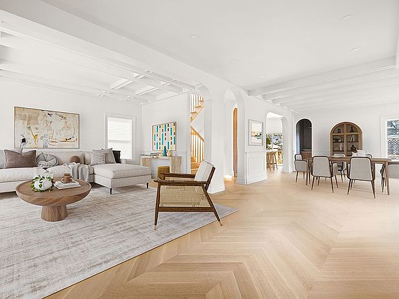 Step inside to discover a grand space for entertaining with a generously sized living room and separate formal dinning area. Custom walnut Kitchen, 48inch Wolf range, paneled fridge add to the elegance. This home also boasts high ceilings adorned with decorative moldings, creating an atmosphere of elegance and sophistication.