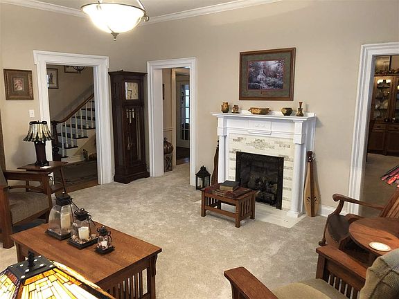 Lovely circa 1836 two-story Gothic-style farmhouse in the historic district. Home features 4 BRs, 4.5 baths, formal living and dining rms, family rm, kitchen w/new cabinets and granite countertops, sun room, and upstairs bonus room. Main floor master bedroom and bath, 6 fireplaces (3 with gas logs). Large yard, brick porches, patio and walks. Outside storage building with attached 3 car carport, children's playhouse and fenced yard. Lots of mature trees and landscaping. (Sq, ft. taken from past appraisal)