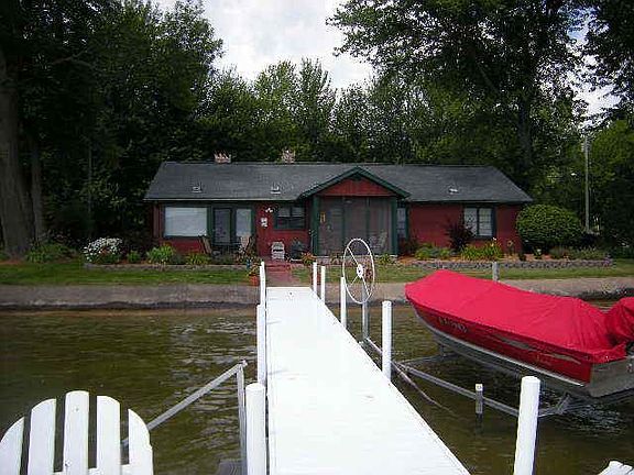 Coldwater Lake front home with 142 Feet of sandy beach. Updates since 2002 include Professional landscaping, new furnace, new central air, rebuilt fieldstone fireplace, new pressure tank, water heater, new softener, custom blinds throughout, new front door, rebuilt SE corner with Anderson Windows, New kitchen with appliances, cabinets, countertops. New limestone custom shower and flooring. Property also now includes 3 lots across the road for parking and possible garage. Separate tax ID's.