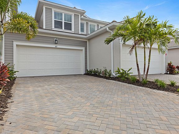 The 2021 Naples Parade of Homes award-winning Carmel coach home is a 1st floor end unit home that is designed to enhance your lifestyle. With 2 bedrooms, 2 baths, and a 2-car garage, this open and airy plan lives like a single-family home. A beautiful designer kitchen features quartz counter tops in Calacatta Arno and 42" upper wood cabinets in Linen, an island with bar seating, and an adjacent sunlit dining area. The kitchen overlooks the airy Great Room that is highlighted by expansive sliding glass doors that lead to the screened, covered lanai. The owner's suite is spacious and provides a private owner's bath with a roomy walk-in closet. The 2nd bedroom features front and side windows and is adjacent to the 2nd full bath. There is direct access to the home provided through the covered porch or through the 2-car garage.