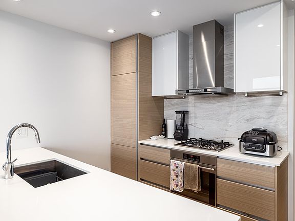 Station Square located in the amazing location of Metrotown! This luxurious concrete SW facing home boasts over 580sqft with astonishing city and mountain views. Gourmet lux kitchen features integrated appliance package with gas range, beautiful large stone island with extended waterfall bar seating, and ample storage. Wide plank flooring flows throughout the living area and into your sizable bedroom. Large balcony with views is perfect for your morning coffee or relaxing after a long day. Remarkable amenities include 24hr concierge, top of the line podium garden with panoramic views, gym, guest suite, party room, and sauna/steam room. Unbeatable location with the evolving conveniences of grocery stores, restaurants, shopping, skytrain, parks and more!