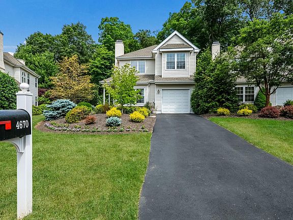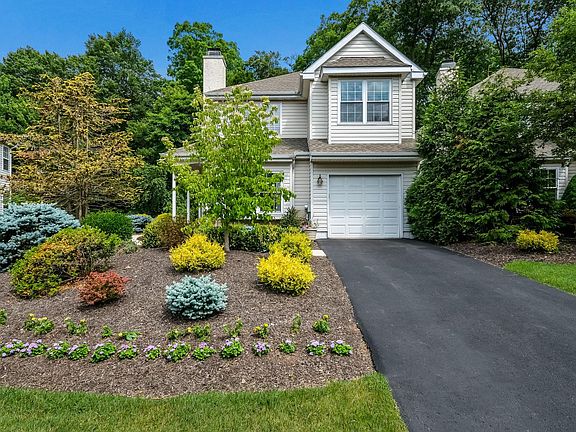 ALL OFFERS TO BE IN, TO THE LISTING AGENT, BY 5:00 PM SUNDAY AND WILL BE PRESENTED TO THE SELLER LATE MONDAY AFTERNOON. Seller would prefer settlement around September 1, 2023. Buckingham Knoll is a small community of carriage homes offering carefree living in Central Bucks School District.. This light filled home has an open floor plan. There are wood floors throughout the first floor. The sunken living room has a beautiful marble, wood burning fireplace. A formal dining room w/wainscoting offers great entertaining space. The open family room and kitchen feature a wonderful wall of windows looking out onto a spacious brick patio, lush landscaping and woods. The main bedroom is a great retreat with coffered ceiling, huge walk-in closet, & tiled bath with jetted tub, new stall shower, new vanity with double sinks. Along with a convenient, upstairs laundry are two more bedrooms & a full tiled hall bath. The finished lower level provides additional living space & is carpeted, has 2 closets, & wet bar. There is an unfinished area of the basement too. 1 car garage w/opener. Pull down stairs to floored attic for storage. Owner pays HOA fees which include trash, lawn care, snow removal. A FLOORPLAN is included with the photos.