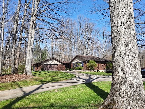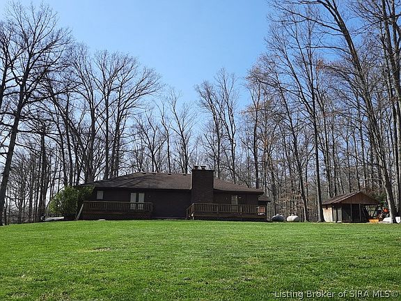 MOVE IN READY home located near FLOYD CENTRAL HIGH SCHOOL. Custom 1,944 sq. ft. home on a secluded, wooded 1.81 acre lot with approximately 1,800 sq. ft. of additional living space in the basement. 3 bedrooms (plus one non-conforming in the basement), 3-1/2 baths and 2 full kitchens! TONS of storage space located in the basement in 4 storage rooms. Downstairs fridge, both dishwashers and microwaves and 2 owned propane tanks stay! Wood burning fireplace in the basement with a new stainless steel flue liner replaced in 2022. Gas log fireplace on the mail level. Wooded lot includes access to 2 creeks, a large yard and plenty of room for outside activities. This home is zoned for Floyds Knobs Elementary, Highland Hills Middle School and Floyd Central High School.