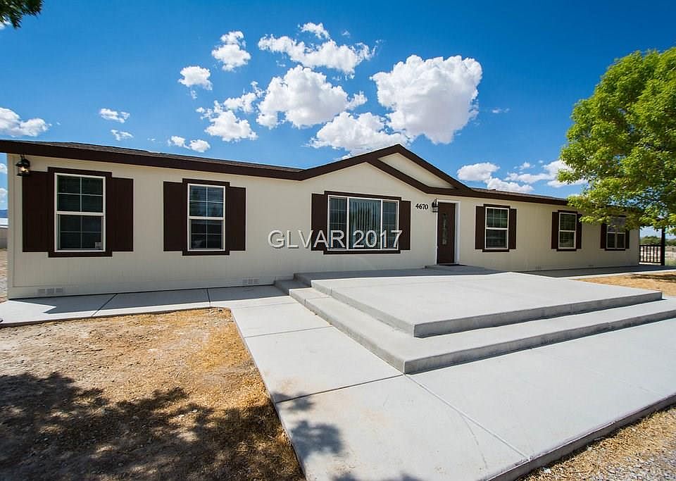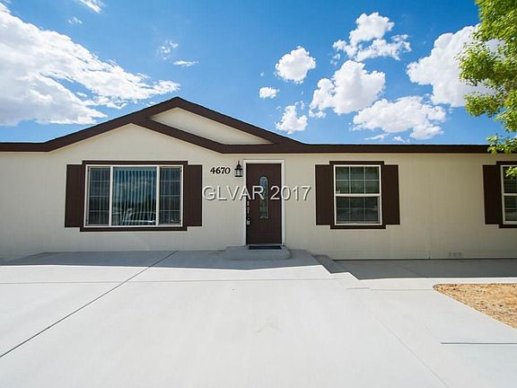 This 2280 square foot mobile / manufactured home has 4 bedrooms and 2.0 bathrooms. This home is located at 4670 Jackie St, Pahrump, NV 89048.