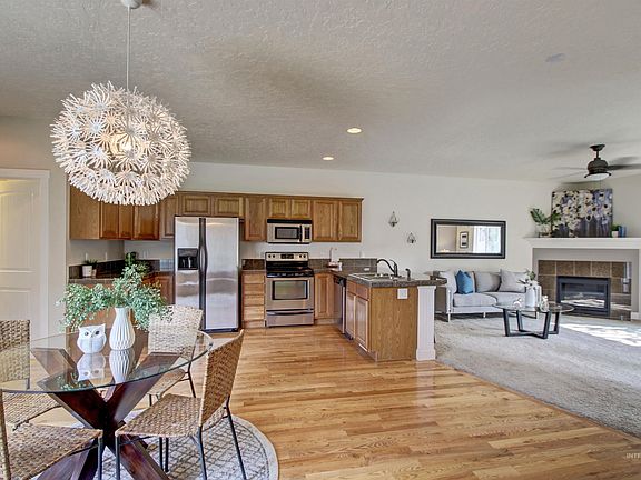 Change your lifestyle and live in this immaculate townhome. All exterior maintenance (paint, siding ,roof, lawn mowing and lawn maintenance) taken care of for you. This home lives large with envious size bedrooms, open concept, soaring ceilings, tile and hardwood flooring. Neutral colors, SS appliances, gas fireplace. Nice master area with tile, double sinks and good size walk-in closet. Covered patio to barbecue or relax with hot tub hookup too. Community pool around the corner. Extra storage above oversized 2 car garage area. Such a convenient location to stores, schools and parks.