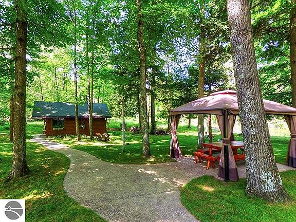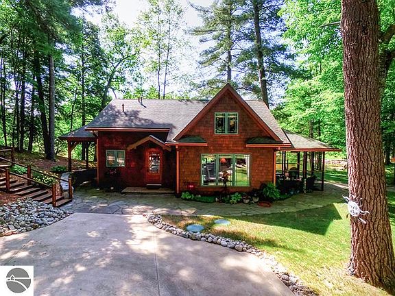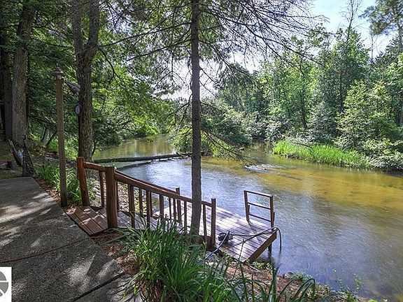 Little Manistee River Front with over 1/2 mile of frontage, 15 woooded acres and amazing home! No development allowed across the river as it is bordered by the Manistee National Forest. Outstanding section of river has adequate structure and gravel. Sitting on a beautiful grassy peninsula is a welcoming quaint, custom and quality built Cedar Shake bungalow with master suite, 3 full bathrooms, hickory floors, corian countertops and welcoming interior accented with bead board ceilings throughout. Home sits serenely at river's edge with the buildings blending peacefully into the wooded habitat. Screened in porch brings you outside in a secure and comfortable space and the flow of the floor plan makes sure you don't miss one moment of wildlife, song bird action and river music. To add to this nearly perfect blend of river, woods and living space are two 2-car garages and a fun and useful building for guests. The guest cabin was built in 2004 (1 bed/1 bath), the garage in 2009 and the extra garage/pole building in 2014. Main garage is 28x36 and guest cabin measures 12.5 x 20.5