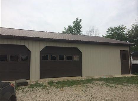 Very private setting way back off road, acreage is partially wooded. Features a nice pole building garage and storage shed.