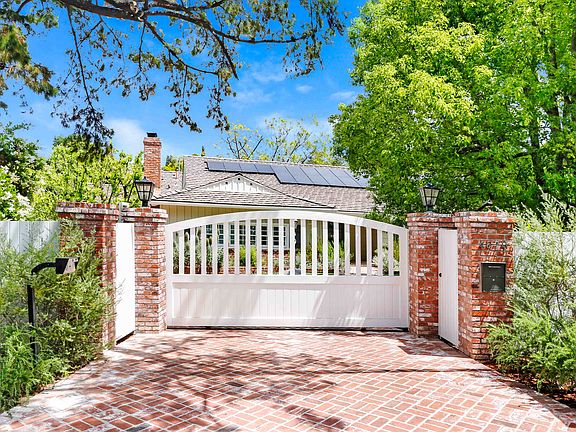 Family paradise in Rancho Estates! Beautiful single-story home in immaculate condition on private, gated nearly half-acre lot. Bright and charming with three fireplaces, exposed brick walls and gleaming hardwood floors. Flawless, flexible floor plan. Chef's kitchen has top-of-the-line appliances including a double oven, separate 36-inch refrigerator and freezer, honed black granite counters, two pantries and eat-in center island. Sophisticated master bath with hand-laid stone floors, a steam shower and jetted tub. The park-like grounds feature mature trees, an oversized salt-water, black bottom pool/spa, two grassy yards, fire pit, mister-cooled dining patio, vine-covered gazebo, built-in BBQ, an adjustable-height basketball hoop and a trampoline area. Many green/smart home upgrades including solar power, electric car set up, cell-phone controlled systems (AC/heat, pool and irrigation), double pane windows, evaporative cooler and three zone heat/air.
