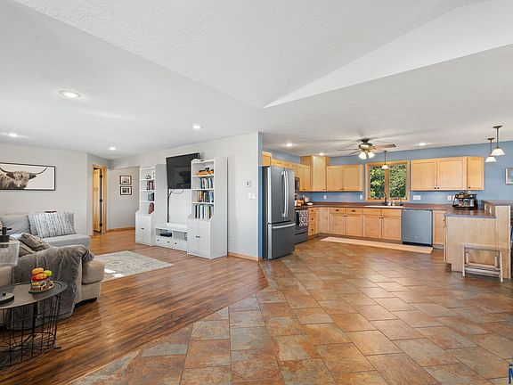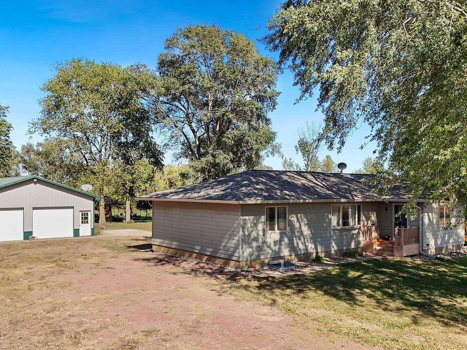 This ranch-style home offers single-story main living plus a finished lower level: 5 bedrooms, 3 baths, and 3,163 finished SF (1,662 up / 1,501 down). Interior highlights include hardwood floors, main-level laundry, and a wet bar on the lower level for game days or gatherings. The attached, oversized 2-stall garage pairs with an additional workshop and crushed-rock parking...room for vehicles, tools, and toys. Outdoor living features a deck, patio, and an outdoor fire pit area overlooking a broad yard. Convenient access to SD-50 and I-29 (Exit 26) puts Sioux Falls/Sioux City within easy reach while keeping you close to Vermillion and the University of South Dakota. Even better, this home is set on a quiet rural stretch just off an oiled road.