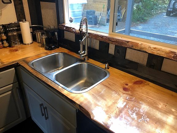 Riverfront Cabin on The Skagit River. Very cool and amazing remodel on this high-end getaway. You'll love all the fascinating workmanship and details; live-edge white pine countertops, island-eating bar, solid wood barn door entry to bath, unique wood stove, new bath w penny tile shower & European vessel sink, stained all wood interior walls and new plank flooring throughout. French doors lead to oversize riverfront deck w amazing views of the river and Mount Baker. 80'x200' 1/3 acre lot. VRBO?