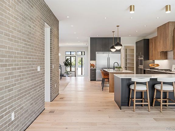 New Build overlooking Eisenhower Park! Architectural detail, high-end finishes, soaring ceilings, upgraded lighting package, and so much more available! A beautiful, curved brick wall welcomes you as you approach the entrance. Incredible natural light illuminates the home from its entry with a brick accent wall to the front living room overlooking the lush greenery of Eisenhower Park. An open - gourmet kitchen is large with 2 seating areas and a dining area with sliding doors to an outdoor terrace - perfect for outdoor dining and entertaining. A sunken den offers up an ideal space for tv watching warmed by a cozy fireplace. A main floor suite, home office or future pool changing room cap off this impressive first floor. Upstairs the 3 bedrooms create serene spaces including an ultra-luxurious primary suite gazing upon sweeping park views. The second-floor roof deck is structurally sound for a future hot tub. The finished basement's rec room and wet bar, plus gym and additional bedroom complete a spectacular new build home ready for its owners. The home is prewired for audio, home automation and security. The sprawling yard is large with endless possibility + a grand outdoor covered terrace with a fireplace. Amazing location and 100 yards to the Highline canal trail. A builder's warranty creates additional comfort and ease. A true must see in an ideal location.