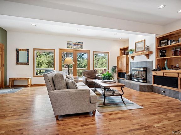 Welcome to your dream home nestled among the majestic mountains of Evergreen! Prepare to be captivated by the stunning mountain views that greet you each day, casting a spell of tranquility and enchantment. As you step inside, be prepared to be awe-inspired by the soaring vaulted tongue and groove ceilings that create a sense of grandeur accented by hand carved posts. Natural light dances through the expansive windows, illuminating every nook and cranny. Take a moment to appreciate the gleaming hardwood floors that add a touch of elegance to every step you take. The open concept layout seamlessly blends the living spaces, making it the perfect canvas for your personal style and creative ideas. One of the highlights of this well-maintained home is the spacious primary suite with its own deck, offering a private retreat to unwind and recharge. There's also a loft that can be used as a home office and a rec space on the lower level where you can curl up with a book or watch your favorite TV show. Located just a stone's throw away from downtown Evergreen, convenience is at your fingertips. Enjoy the vibrant atmosphere, explore charming local boutiques, indulge in delectable dining options and traverse endless trails on foot or bike, all within a short distance from your new sanctuary. Whether you're hosting a dinner party, cozying up by the fireplace, or simply relishing the breathtaking views from the multiple outdoor deck spaces, this property offers the perfect backdrop for cherished memories. Don't let this opportunity pass you by! Embrace the mountain lifestyle and make this delightful haven your own. Come and experience the magic of this Evergreen gem today! **Note that sellers are currently processing an insurance claim related to June hail events that should result in replacement of the roof and deck repairs.**