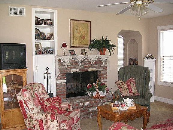 Victorian Style home with a built in pool! 3 bedroom 2.5 bath home, assessor says 1764 but the original garage has been converted into a large Great room,with large custom Tile, that is nearly 400 square feet. Single detached garage to the rear of property. The family room has a New Mini Split Air and Heat, double french doors. There is a retreat that is a Walk in Dressing room with 9 separate closets in the master bedroom. All the bedrooms are upstairs. Working gas Fireplace in living room, New Built in Cabinets with Kitchen dining nook, formal dining room, with New installed Cabinets that match Kitchen, New Lennox central air and heat, gunite Heart Shaped pool. Sellers have installed travertine Blond Tile in front dining room into extended Kitchen. Same New flooring in the kitchen area.