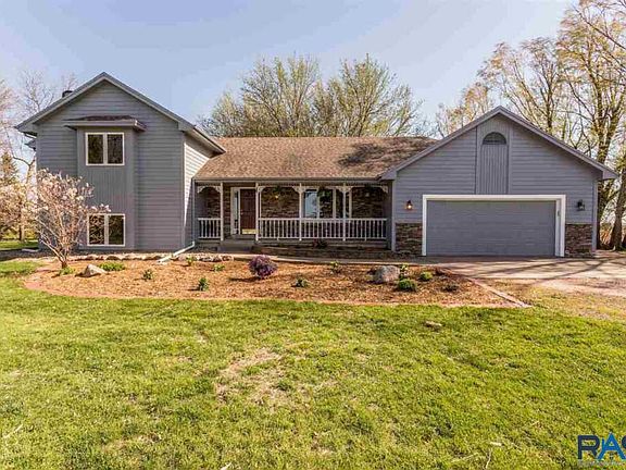 Some acreages say minutes from Sioux Falls, this one truly is! Great combination of space, charm, privacy, and location! This updated multi-level home is inviting with an open concept of practicality. The large foyer greets guests and opens to a spacious kitchen and dining room. The main level also features a second living room, office, or playroom for the littles! Head upstairs where parents find peace of mind with 3 bedrooms on one level including the master bedroom with 3/4 bath, walk in closet and grand vaulted ceiling. The lower level makes family movie night easy with plenty of space for relaxing, comforting glow of a gas fireplace and plush new carpet. A 4th bedroom and additional full bath complete the lower level. The unfinished basement is a great workout room or helpful storage area. The home and outbuilding sit on 2.5 acres and are protected by mature trees all around for tranquil privacy for family and pets. Too many updates to list! Best thing to do is see for yourself!