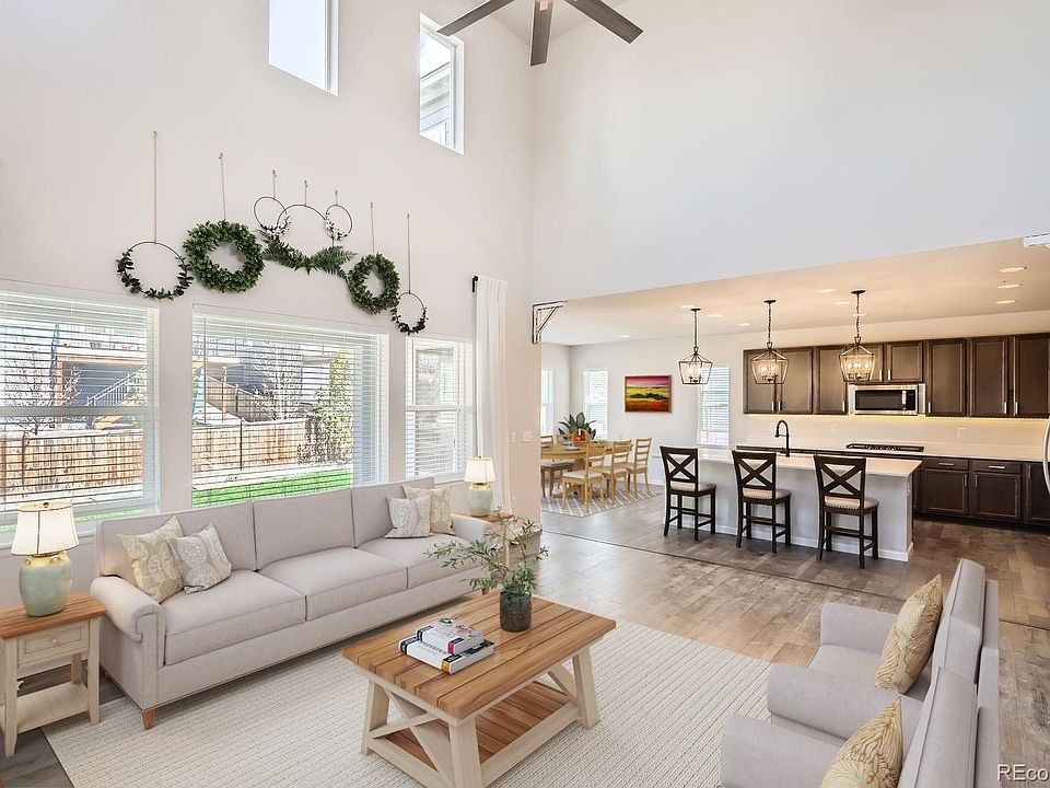 This meticulously maintained 3 bedroom, 3 bathroom home is the perfect opportunity to own in one of Castle Rock's most coveted neighborhoods, the Terrain. Step inside and enjoy the spacious open floor plan and thoughtful finishes. The large chef's kitchen features quartz countertops, abundant cabinet space, and stainless steel appliances. The first floor is complete with a secluded study/office space, half bath, dining area and a stunning great room with large windows overlooking the private backyard. The dining area seamlessly flows onto the covered back patio allowing you to entertain friends and family year-round. Go upstairs to find a spacious rec area that can be used as a play area, office, or fitness space. The primary suite features an en-suite 3/4 bathroom along with a custom walk in closet. Two additional bedrooms, a full bath, and laundry room complete the upstairs. Community amenities include walking and hiking trails, resort-style pool, and a dog park for your furry family members. Additionally Wrangler Park features tennis courts, playgrounds, and picnic areas. Conveniently located near I-25 and light-rail, this home provides easy access to the greater Denver Metro area, making commuting a breeze! Also in proximity to dining, shopping, top-rated schools, and recreational activities.