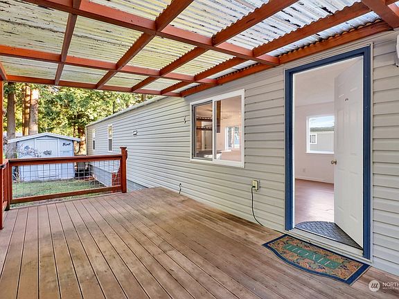 Enjoy year-round living in an all ages 23 acre park in Birch Bay! Very well cared for manufactured home in Ponderosa Estates. 2 bedroom, 2 bath with a large covered deck, double pane windows and metal roof. Detached shed for extra storage. Upgrades include the installation of a heat pump/ mini split for year round comfort, a walk in shower, and a brand new oven. Minutes from the Canadian border and a short drive to Bellingham.