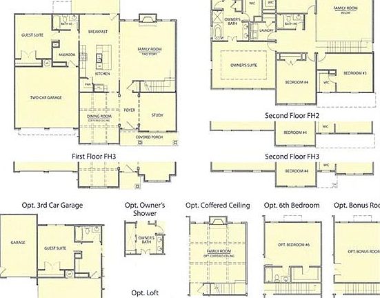 The Reynold FH-1 floor plan. This home is a To Be Built Home. 5 Bedrooms and 4 Baths. From the Foyer you will have a Dining Room on one side and a Living/ Flex Room on the Other. Kitchen will feature a beautiful Island and a Walk In Pantry. Kitchen is open to the Family Room. First Floor also offers a Guest Room with hall Bath. Nice Mud Room area from Garage. Stairs are in the Family Room. Family Room is also two Story, with soaring Ceilings. Upstairs, 3 secondary bedrooms, one with a private bath. Owner's Suite offers a Tray Ceiling and beautiful windows for lots of natural lite.