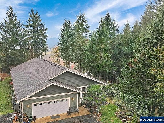 Craftsman Custom built home on a quiet and secluded 5.4 acres of timber with coast range, mountains, & territorial views! This spacious home offers 4 bedrooms, an office, & 2 baths (double sinks w/ many amenities). Property has a recently built 36x50 Shop with concrete flooring and framed in office. Enjoy tranquility from your front covered porch or your back deck. Many walking trails and flat areas to make this property yours! Oak Hardwood flooring throughout the living area. Heavy wood mantel on Stone built Woodstove Fireplace and Large Windows to enjoy daylight. Kitchen with Eating Bar Island, Double Ovens, Granite countertops and Walk-In Pantry. Retreat into the owners suite which has a walk-in closet, soaker tub, fully tiled walk-in shower, and Double Sink.