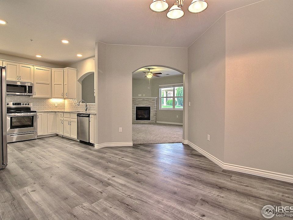 Brand New Main Floor Luxury Condo for sale with incredible finishes that include Granite countertops, Designer Fireplaces, Custom Cabinets, A/C, Stainless Steel Appliances including Refrigerator, Full backsplash, Full tile shower, walk-in closets, oversized 2 car garage and covered Patio. Maintenance Free Living and dynamite location close to parks, shopping and vibrant centerplace.