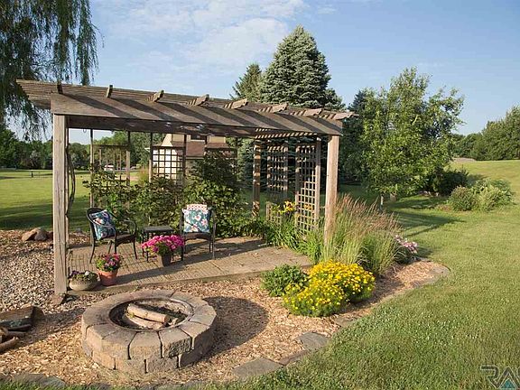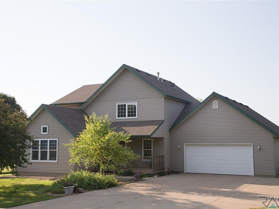 Ideal location just minutes west of Sioux Falls in Songbird Acres! Peaceful acreage setting features a spacious 2 story home, 1. +/- acres and mature trees. This 4 bedroom, 3.5 bath home offers over 3000 square feet plus a large storage room and 34'x24' garage. Open design with vaulted ceilings, gorgeous cherry kitchen cabinetry and large windows for natural light. Large kitchen with breakfast bar, dining area, and French door to a covered deck too! Master suite offers walk-in closet, huge vanity, soaking tub, and 3/4 bath. Main level also offers a formal dining/den large living room & convenient laundry too. Lower level has a family room with cozy electric fireplace, bedroom, and 3/4 bath. Awesome location, 1+ acre yard with fire pit and pergola patio, oversized garage with attic storage, and much more!